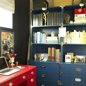 Have you seen a more dramatic home office than this? I haven't. The moody walls, dark furnishings, and the over-the-top oversized (two!!) hanging lights.... draaamaaaa! This might not be a very practical home office but it do really sets the mood... it might not just be for working. Haha